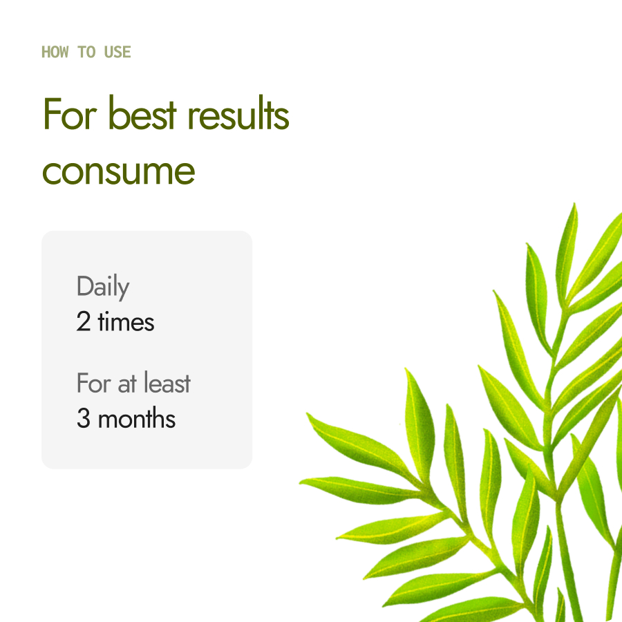 For best results, consume these capsules 2 times every day, for at least 3 months*