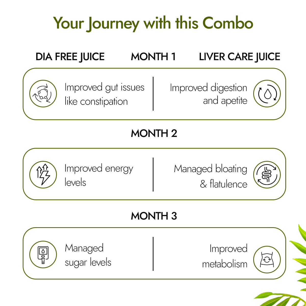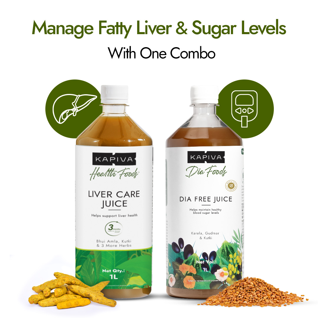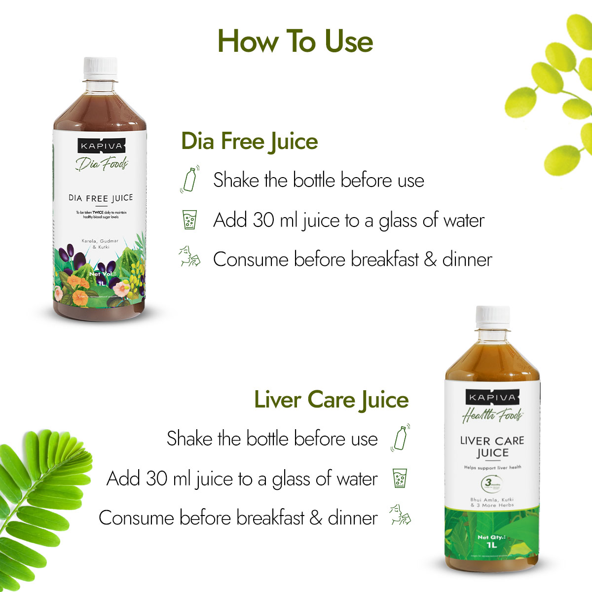 Dia Free Juice + Liver Care Juice is a powerful combo to manage Sugar Levels and Fatty Liver together.