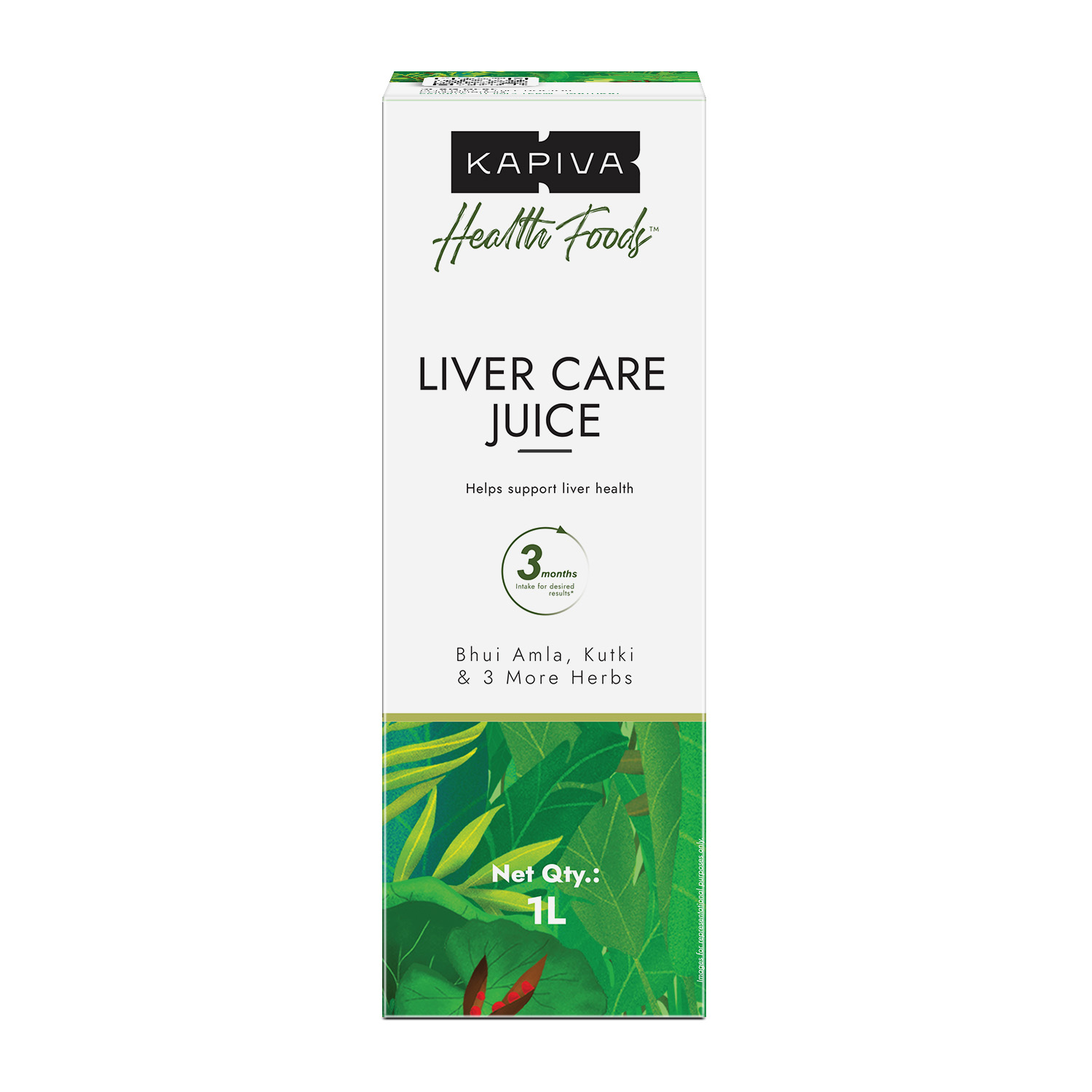 Kapiva Liver Care Juice is a blend of 5 ayurvedic herbs that helps manage fatty liver and its symptoms, including abdominal pain and indigestion.