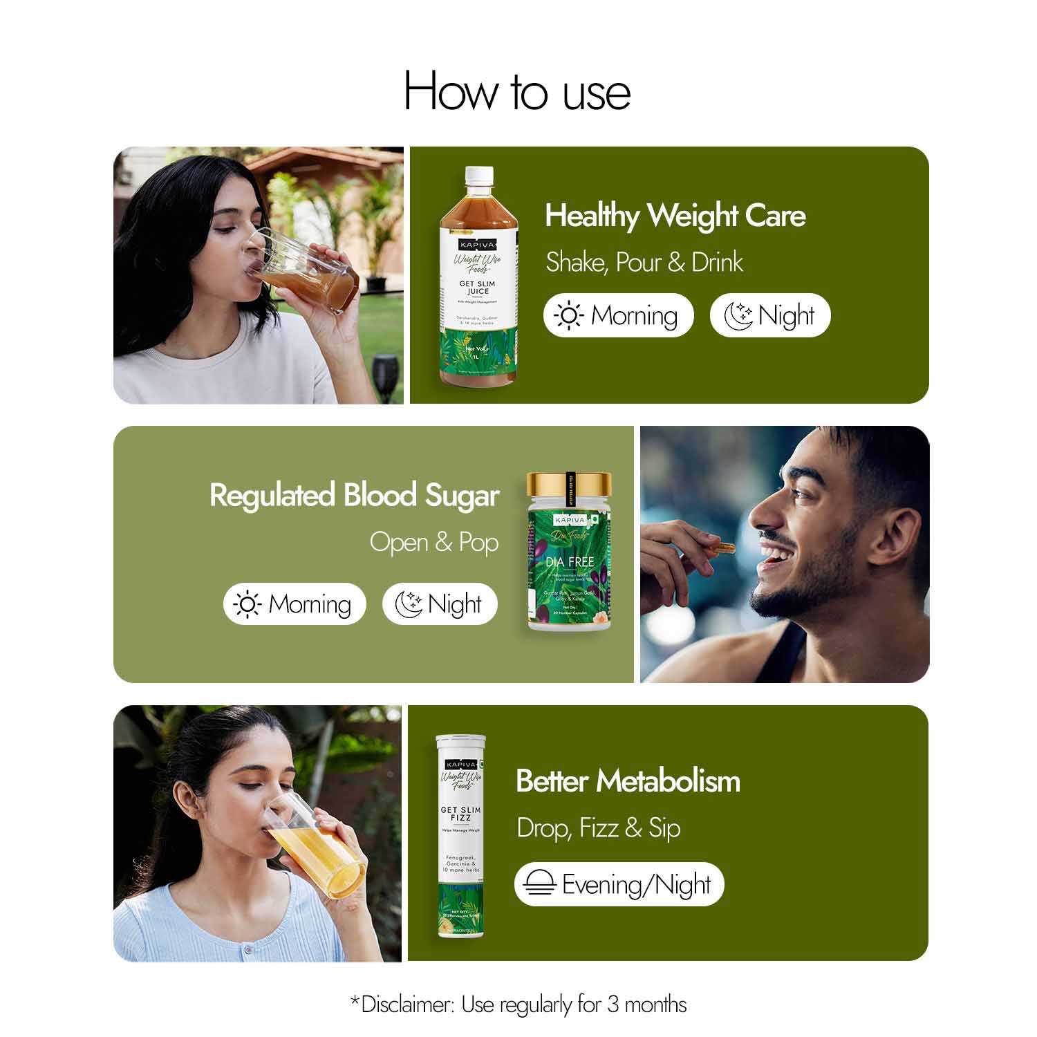 This Ayurvedic treatment for bllod sugar focuses on improving the body’s metabolism by enhancing the digestive fire, increasing energy levels, and slowing down carbohydrate absorption. This combo is the ultimate Ayurvedic solution to aiding weight-loss-induced blood sugar management.