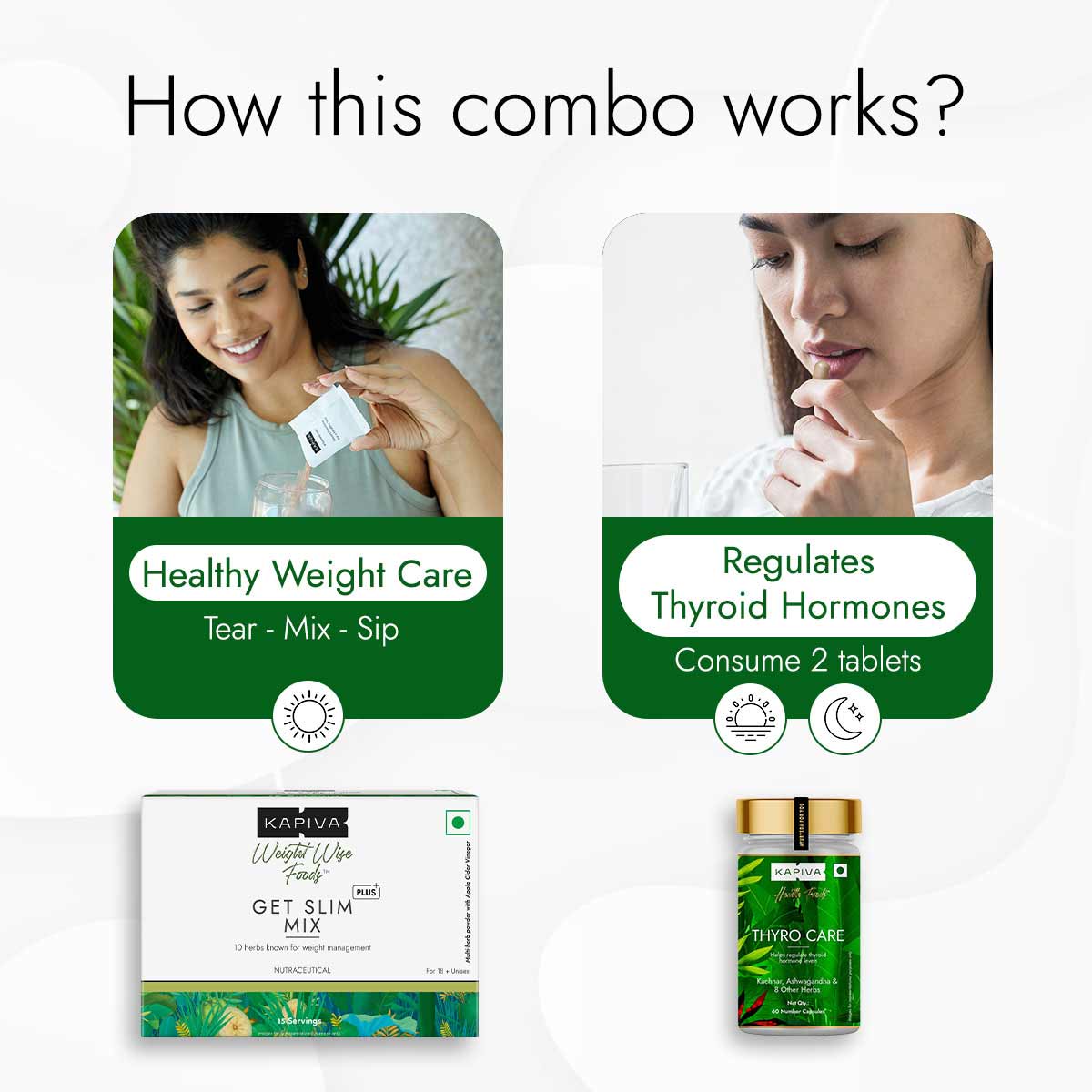 Consume 1 capsule* | Twice a day | 1 hour after meals | Gulp with water (Thyroxine medicine dosage is below 50mg) Consume 2 capsules* | Twice a day | 1 hour after meals | Gulp with water (Thyroxine medicine dosage is above 50mg)