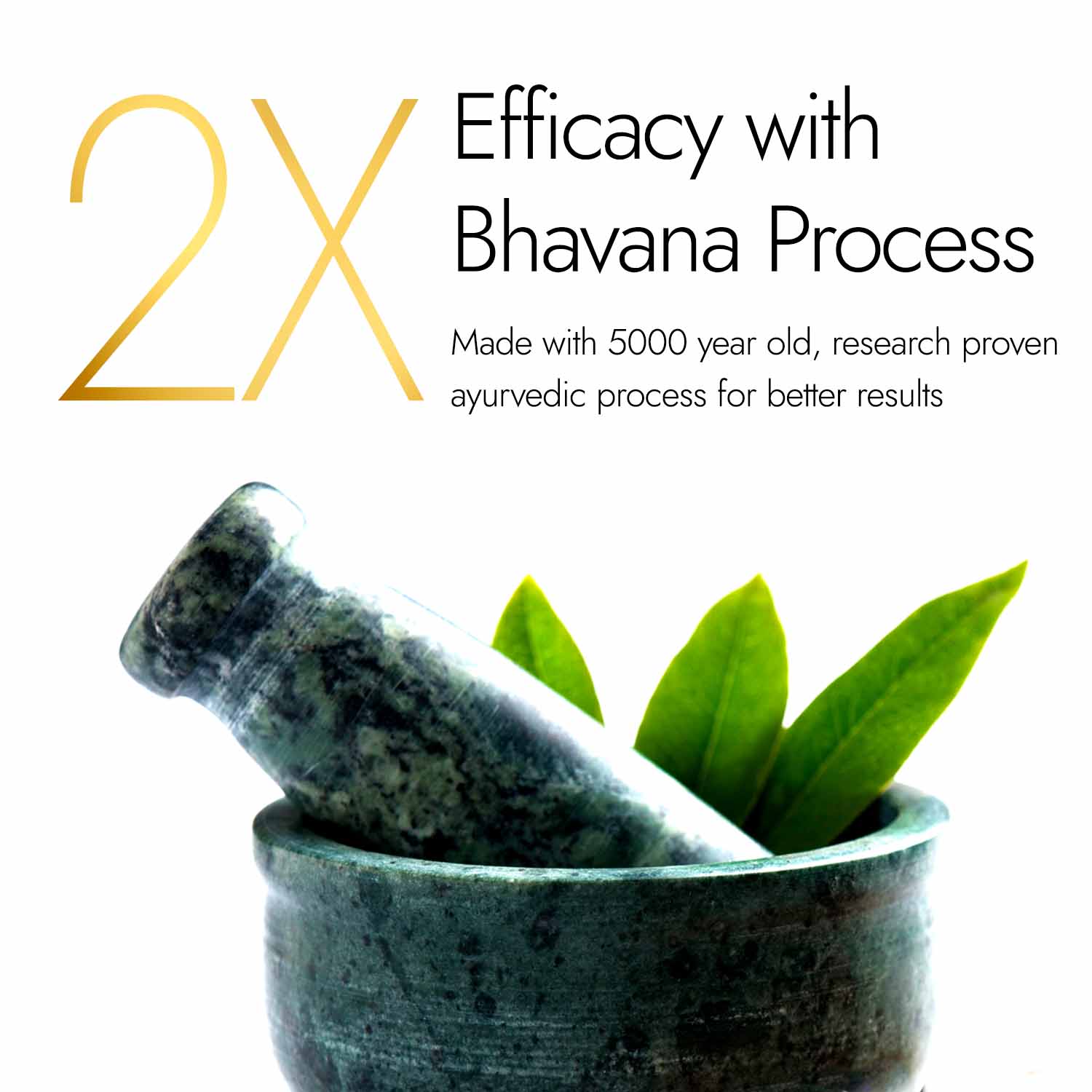 Each capsule provides 2X efficacy as it is made with the 5000 year old, research proven Bhavana process.