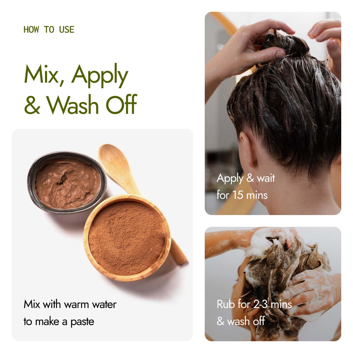 Mix the required amount of Organic Shikakai Powder with warm water to make an even paste. Let it rest for 10-15 minutes.