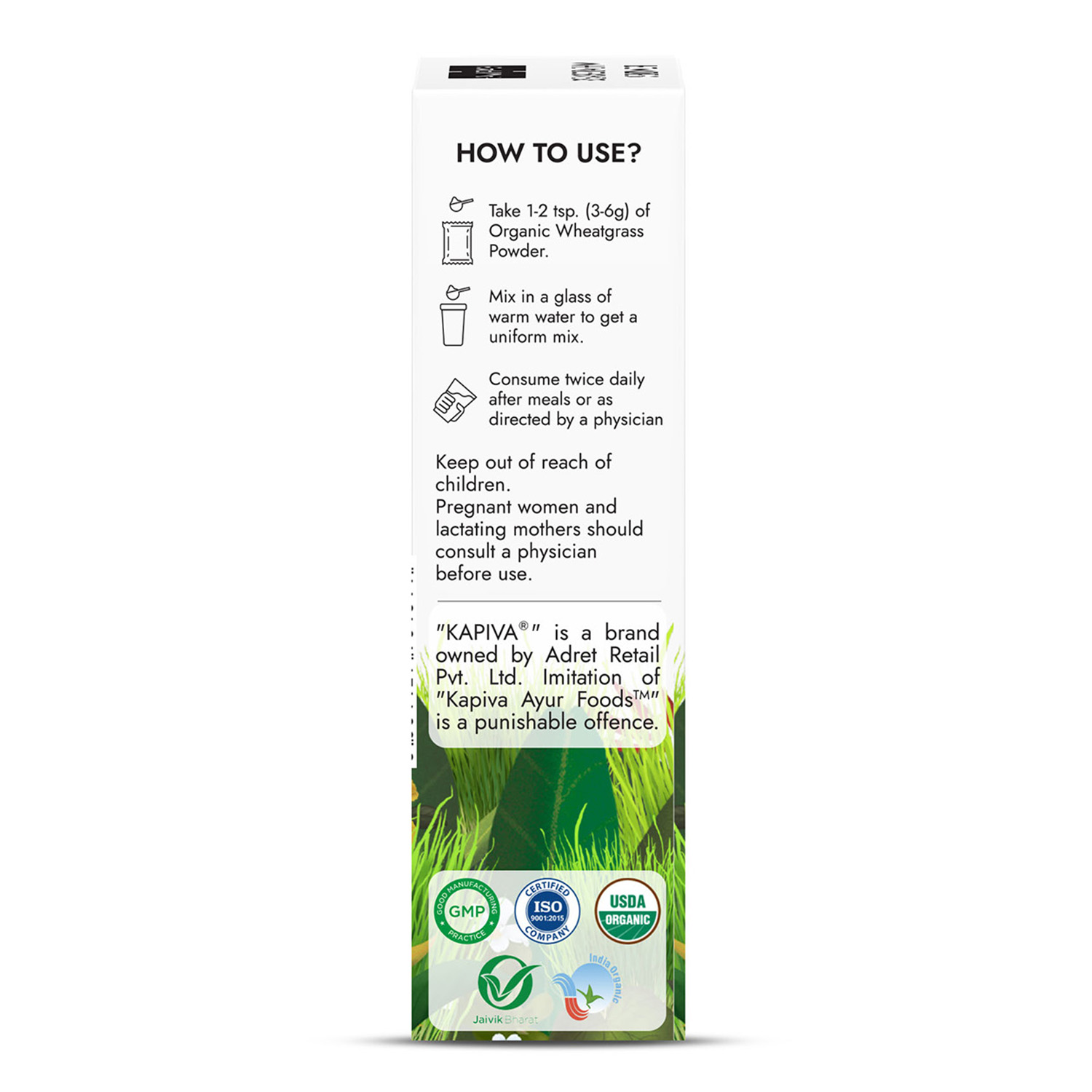 All this and more without the effect of chemicals because the Kapiva Organic Wheatgrass Powder is certified by USDA Organic, India Organic & Jaivik Bharat.