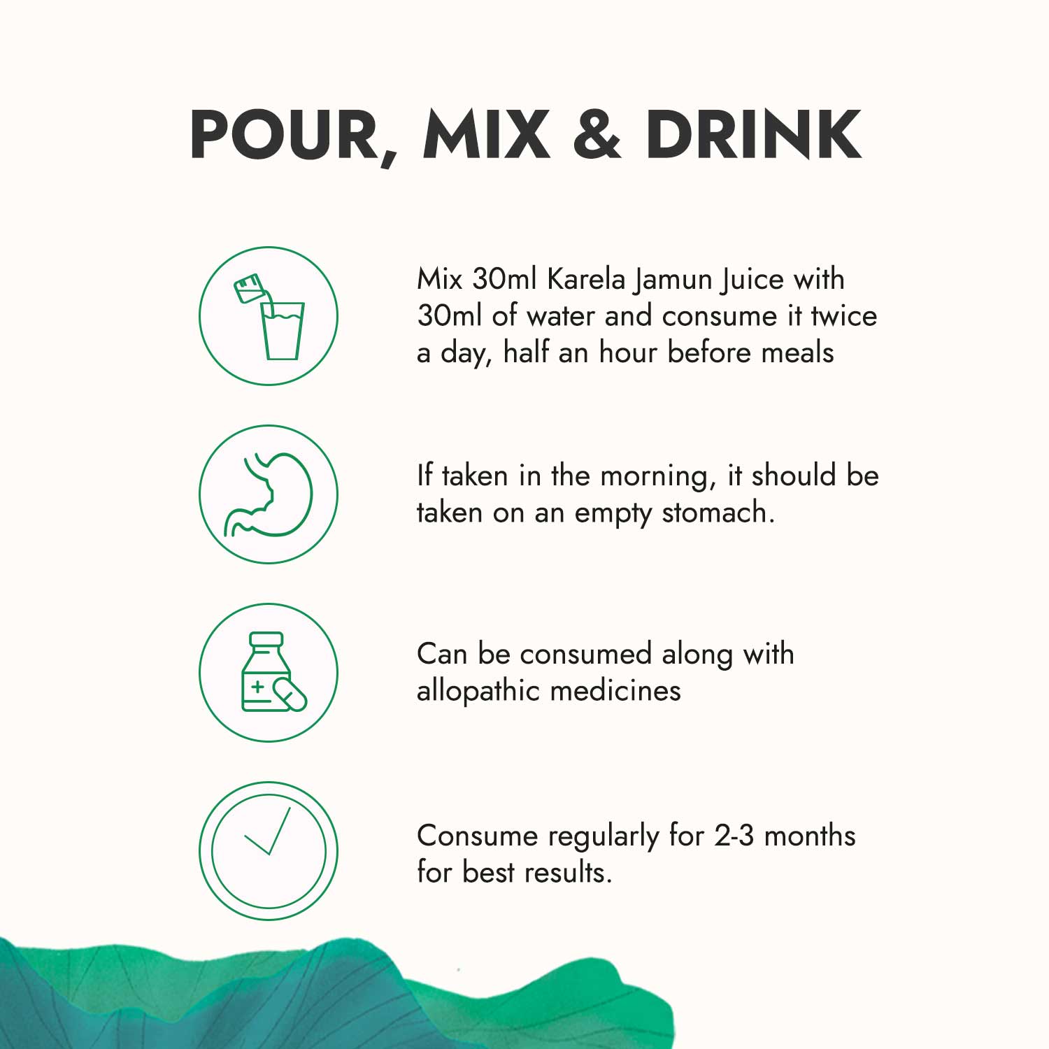 Dilute 30 ml of Karela Jamun Juice with 30 ml of water