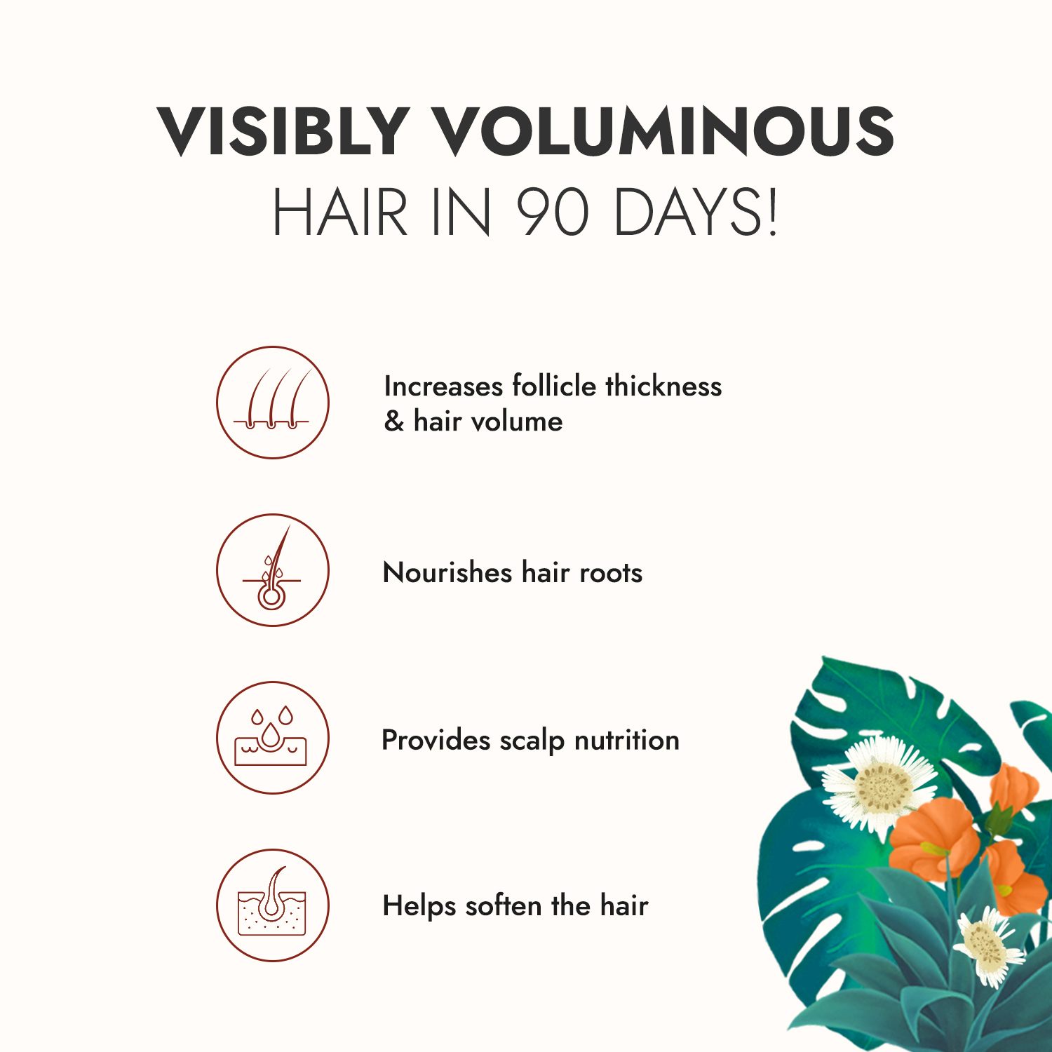 Benefits of this oil - Helps increase hair volume within 90 days, provides scalp & hair root nutrition and increases follicle thickness & hair volume which as a result helps soften the hair