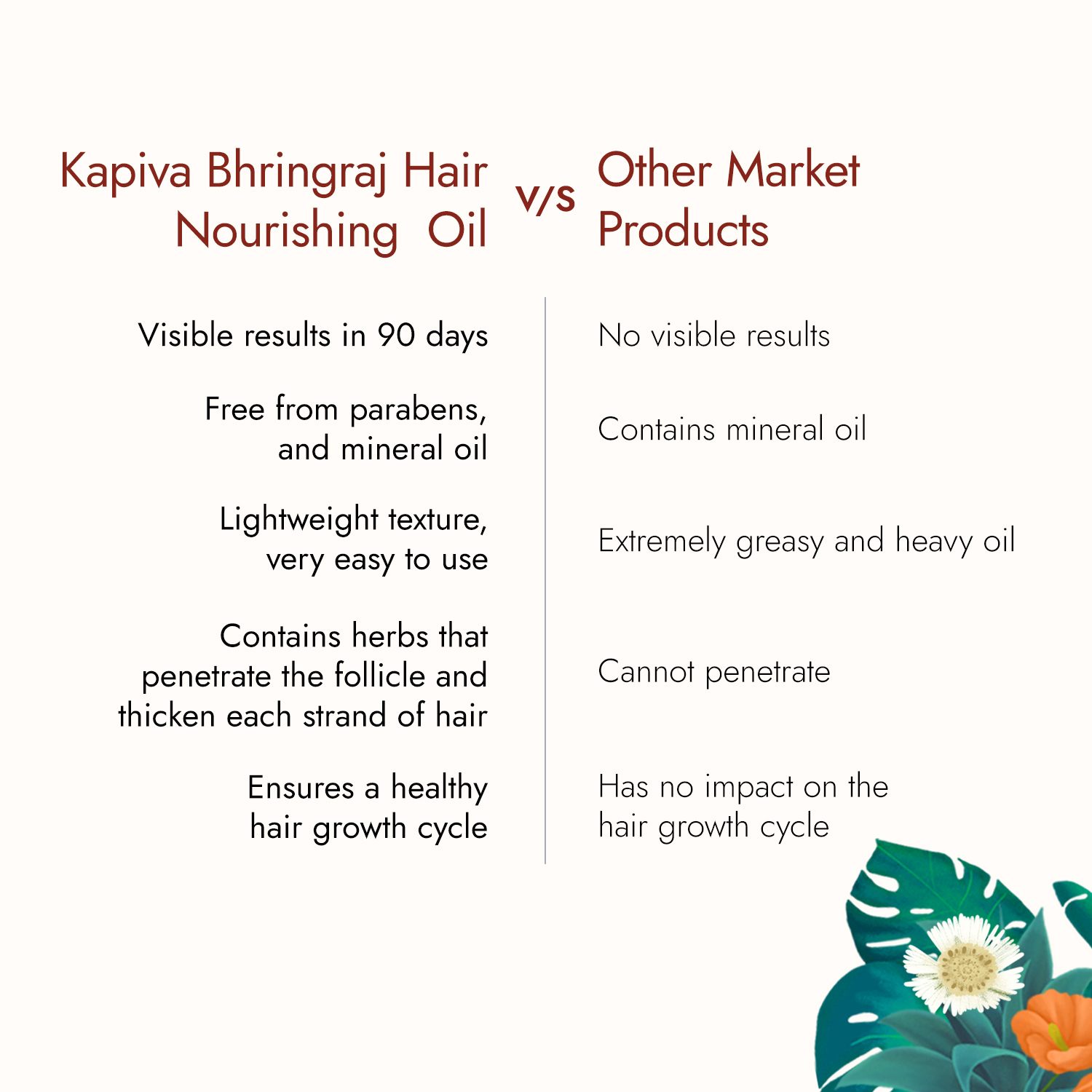 Kapiva Bhringraj Hair Nourish Oil helps increase hair volume, and strength in 90 days, by providing nutrition to your hair roots and scalp.