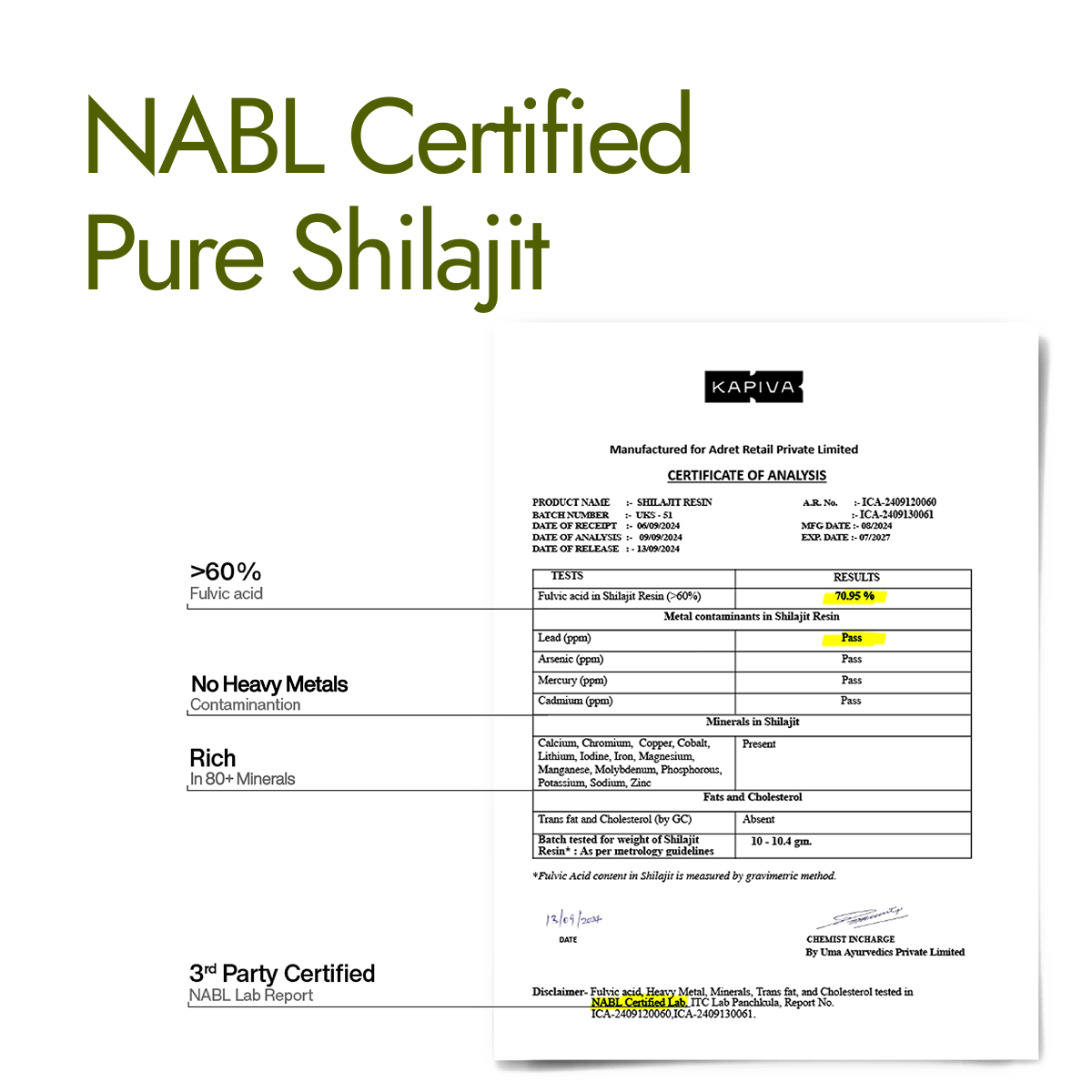 It comes with an exclusive NABL lab test report with every purchase. It is GMP certified and contains 85+ trace minerals. It keeps you a cut above the rest with its effective and powerful properties.