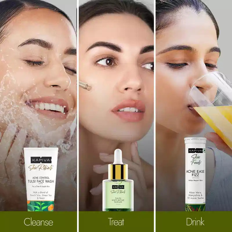For faster results and acne treatment, we recommend Tulsi Anti Acne Serum + Acne Ease Fizz to treat acne from within.