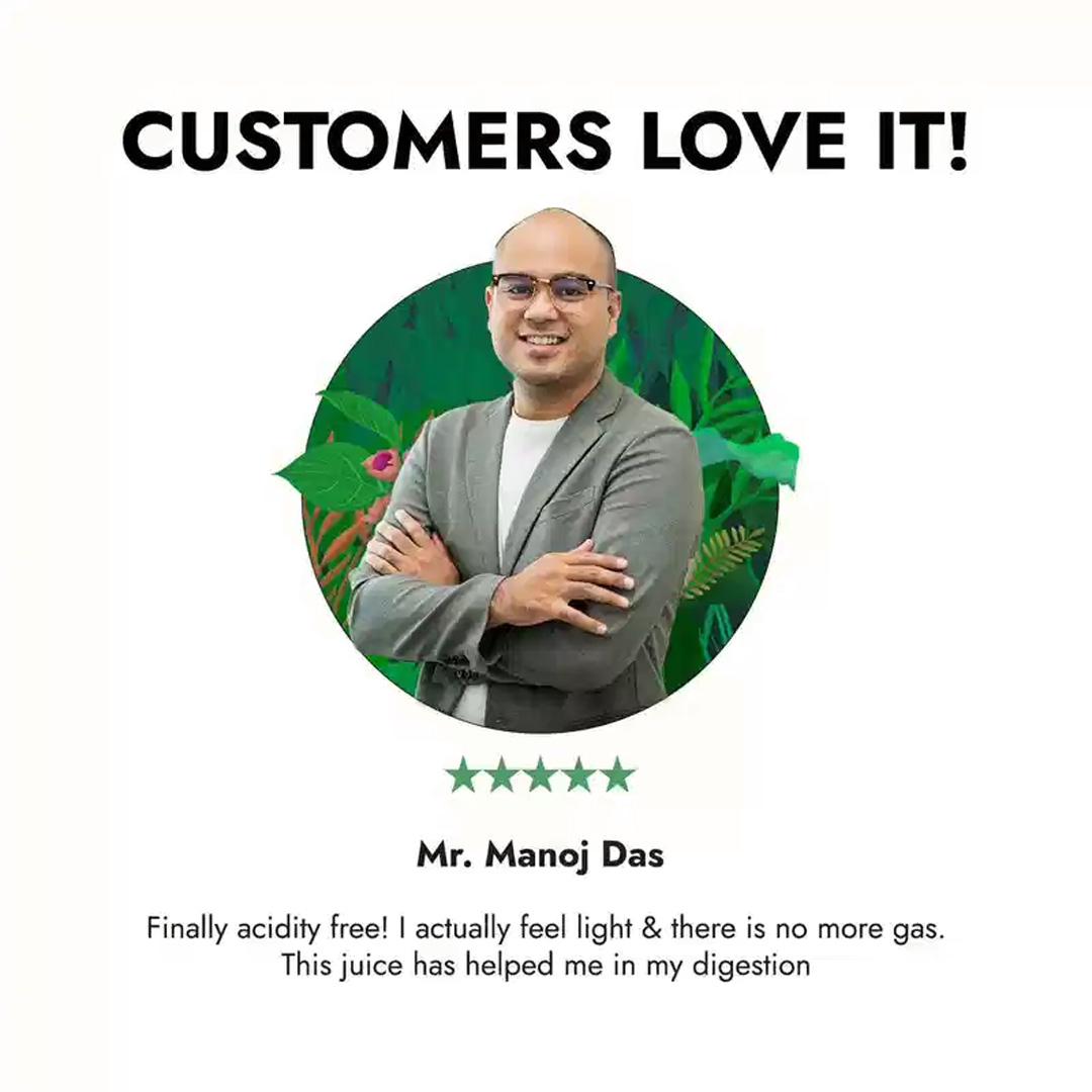 Benefits of this juice - relieves gastrointestinal problems, aids secretion of digestive juices, gives relief from bloating and acidity, for long term