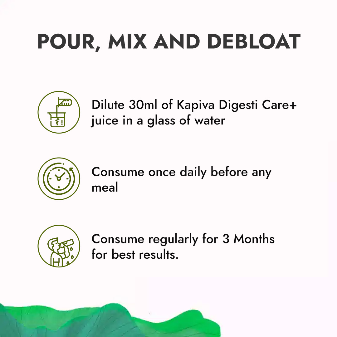 Dilute 30 ml of Kapiva Digesti Care+ juice in a glass of water
