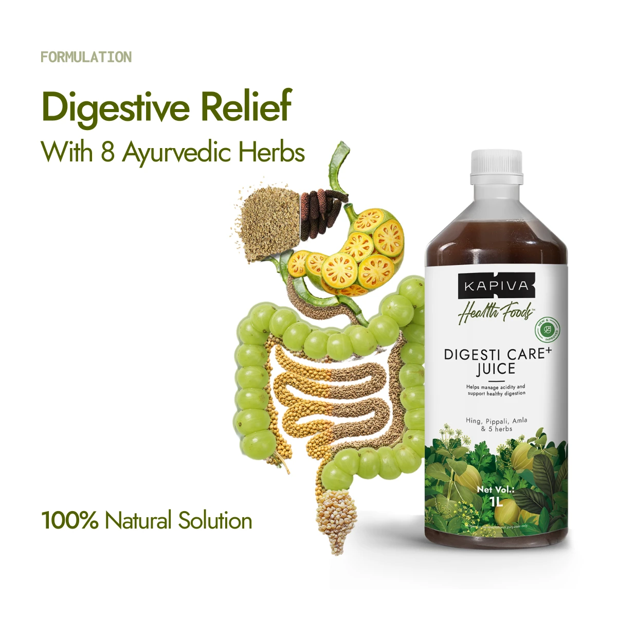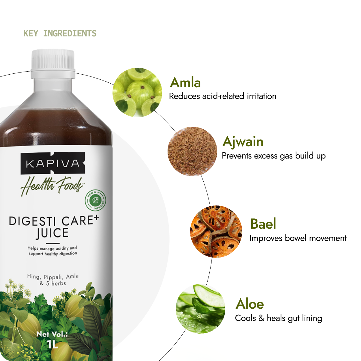 Digesti Care+ juice helps in preventing stomach acid pH level fluctuations which can be caused to variety of reasons
