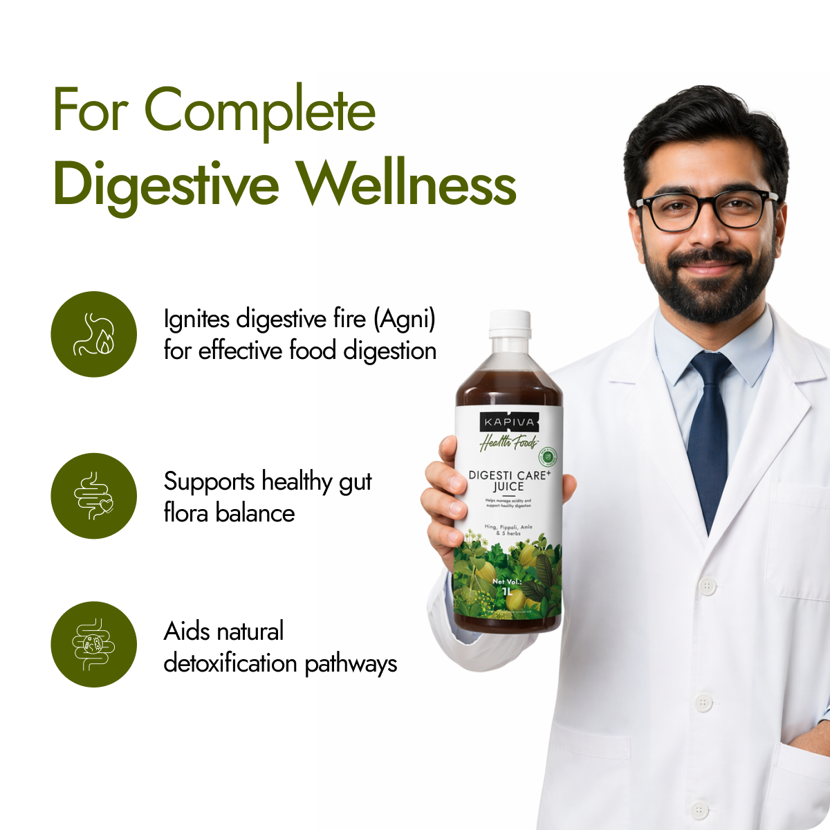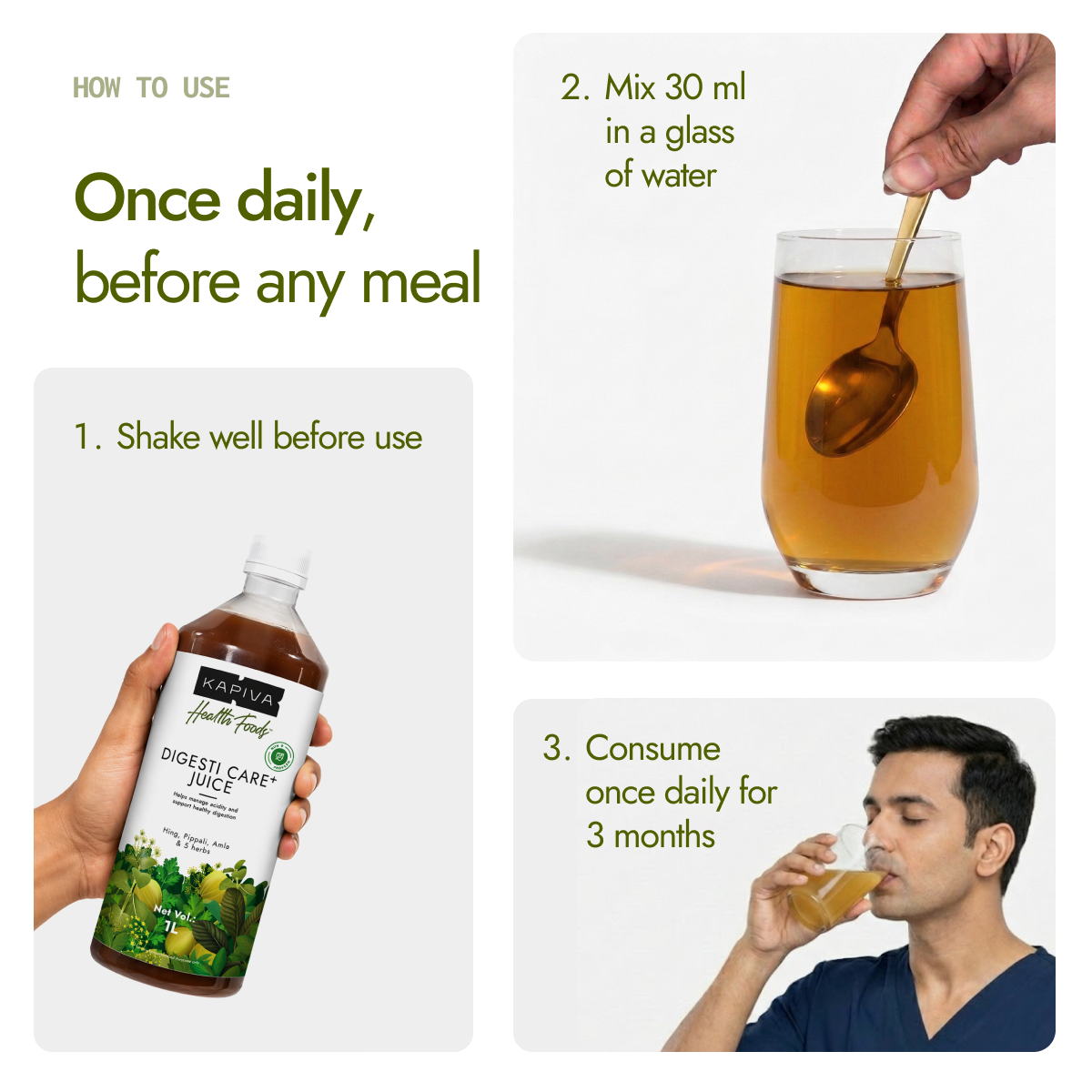 Dilute 30 ml of Kapiva Digesti Care+ juice in a glass of water