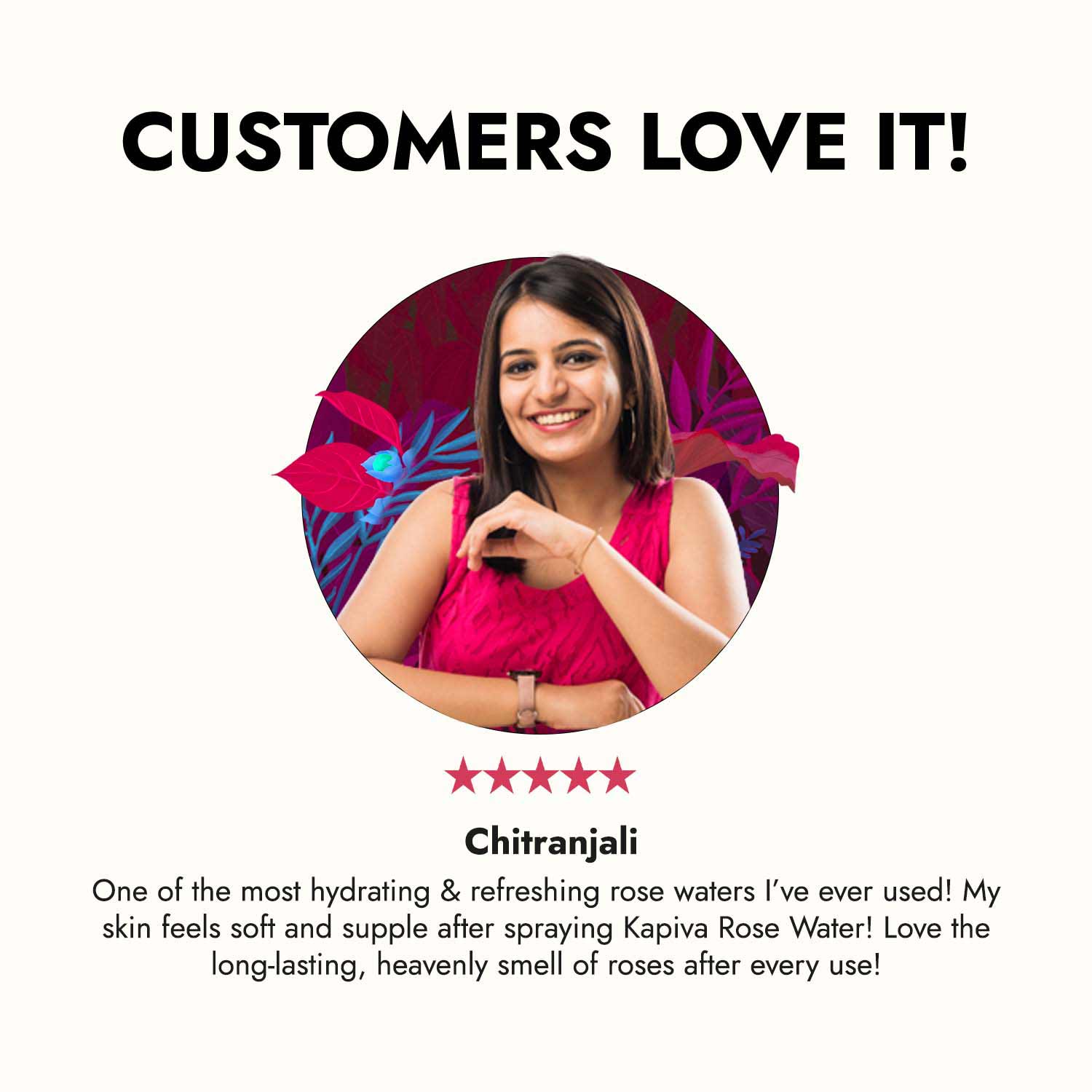 Essence of 10 Rose Petals in a drop! Kapiva Rose Water leaves your skin hydrated and relaxed after every spray.